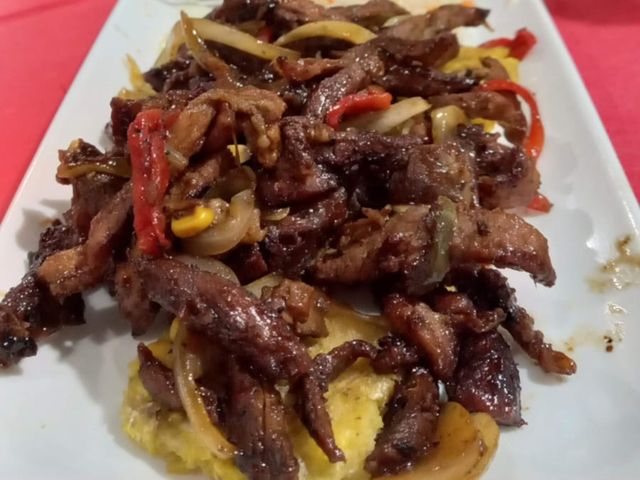 Preparado con trozos de carne, pollo y cerdo.